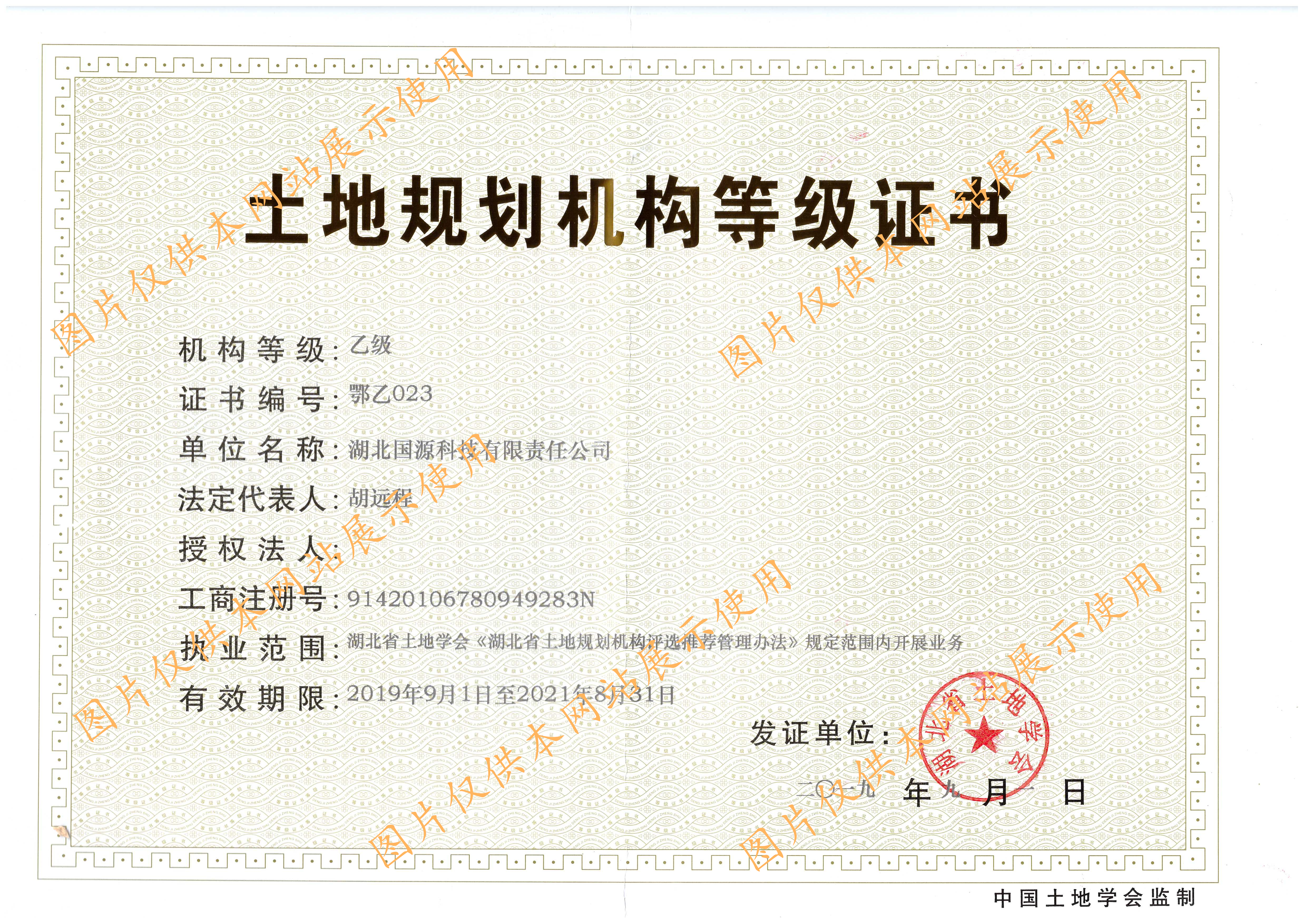 土地規(guī)劃乙級(jí)資質(zhì)證書